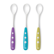 Sus bordes redondeados previenen daños en la boca del pequeño y su mango largo y ergonómico, brinda un agarre firme y seguro que permite alcanzar hasta el último rincón de los envases o platos muy profundos.