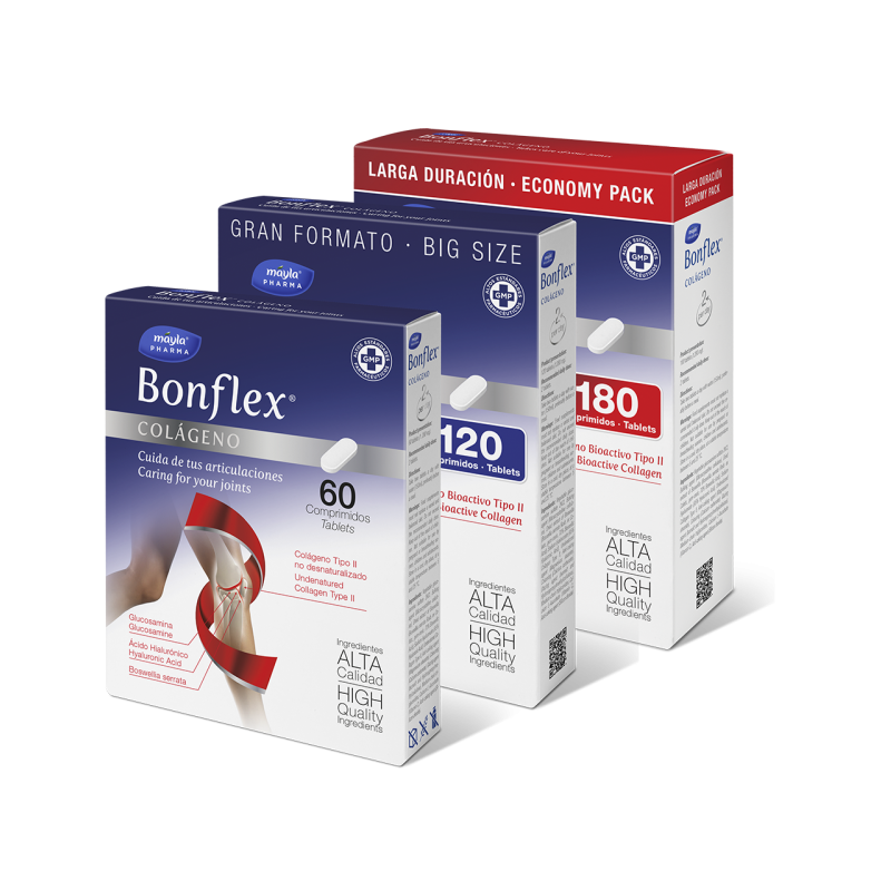 Bonflex® Colágeno está especialmente indicado para personas que practican deporte de manera regular o que por su trabajo y ritmo de vida, sufren un aumento de carga en sus articulaciones. Se recomienda tanto a personas de mediana y avanzada edad, así como a jóvenes que por su actividad diaria puedan tener un mayor desgaste en sus articulaciones y quieran, de manera preventiva, cuidarlas.
